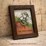 Made in the Holy Land, this unique artwork combines a high-quality wooden frame with protective glass and a detailed sacred image. Inside the frame are two layers of natural moving sand, creating a subtle and elegant visual effect that gently shifts over time, adding life and depth to the piece.