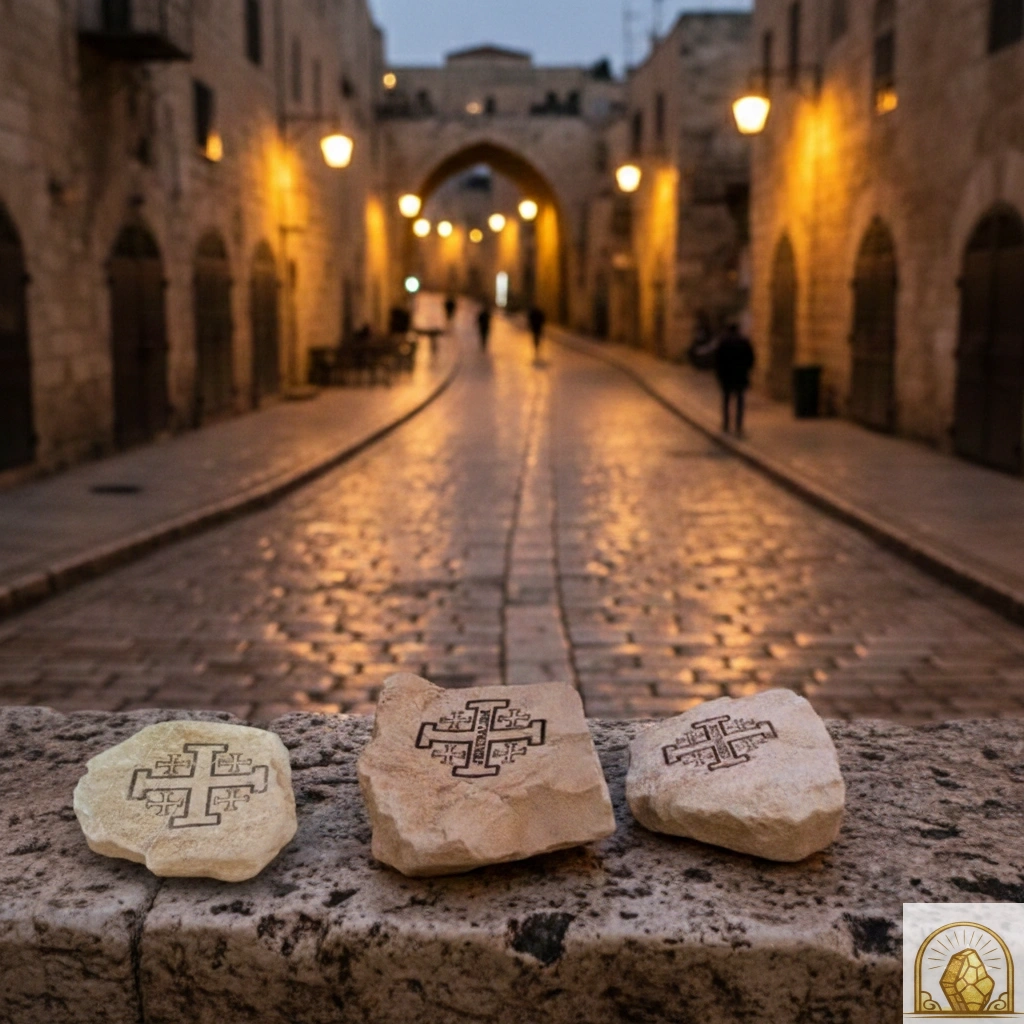 Each stone carries its own natural markings and variations, reflecting the authenticity and beauty of the Holy Land itself, while maintaining an identical engraved design as requested.