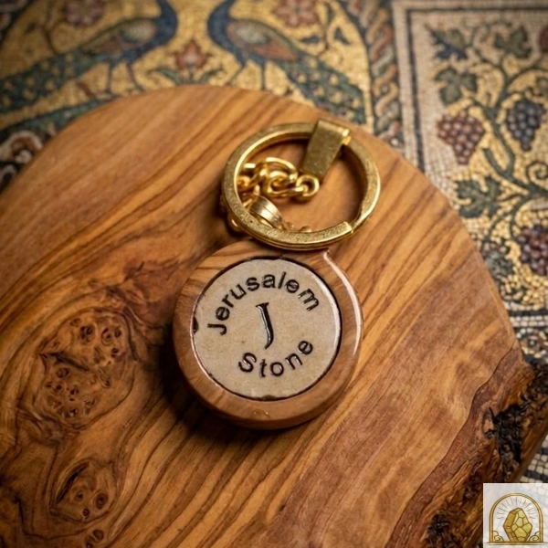 Jerusalem stone Olive Wood keychain