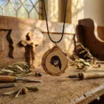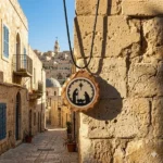 Carry a meaningful piece of the Holy Land with you. This handmade necklace is crafted from authentic Jerusalem stone sourced from Jerusalem and its surrounding areas. Each stone is carefully engraved with a unique religious design and set inside a beautifully shaped olive wood frame, reflecting the rich spiritual and cultural heritage of the region.