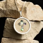 The sterling silver setting and matching silver chain create a refined finish, combining spiritual symbolism with timeless elegance.