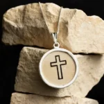 A meaningful piece of the Holy Land, beautifully handcrafted from authentic Jerusalem stone and set in high-quality Sterling Silver 925. This unique necklace features a finely engraved religious symbol, elegantly framed in polished silver, highlighting the natural beauty, texture, and character of the sacred stone.