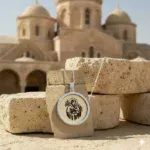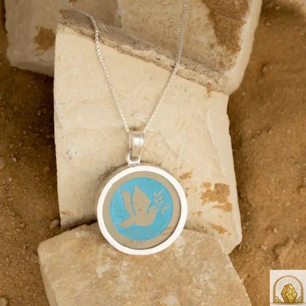 A meaningful piece of the Holy Land, beautifully handcrafted from authentic Jerusalem stone and set in high-quality Sterling Silver 925. This unique necklace features a finely engraved religious symbol, elegantly framed in polished silver, highlighting the natural beauty, texture, and character of the sacred stone.