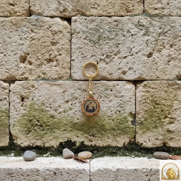 Original price was: 45,0 $.39,9 $Current price is: 39,9 $.Jerusalem Stone & Olive Wood Keychain – Handcrafted in the Holy Land